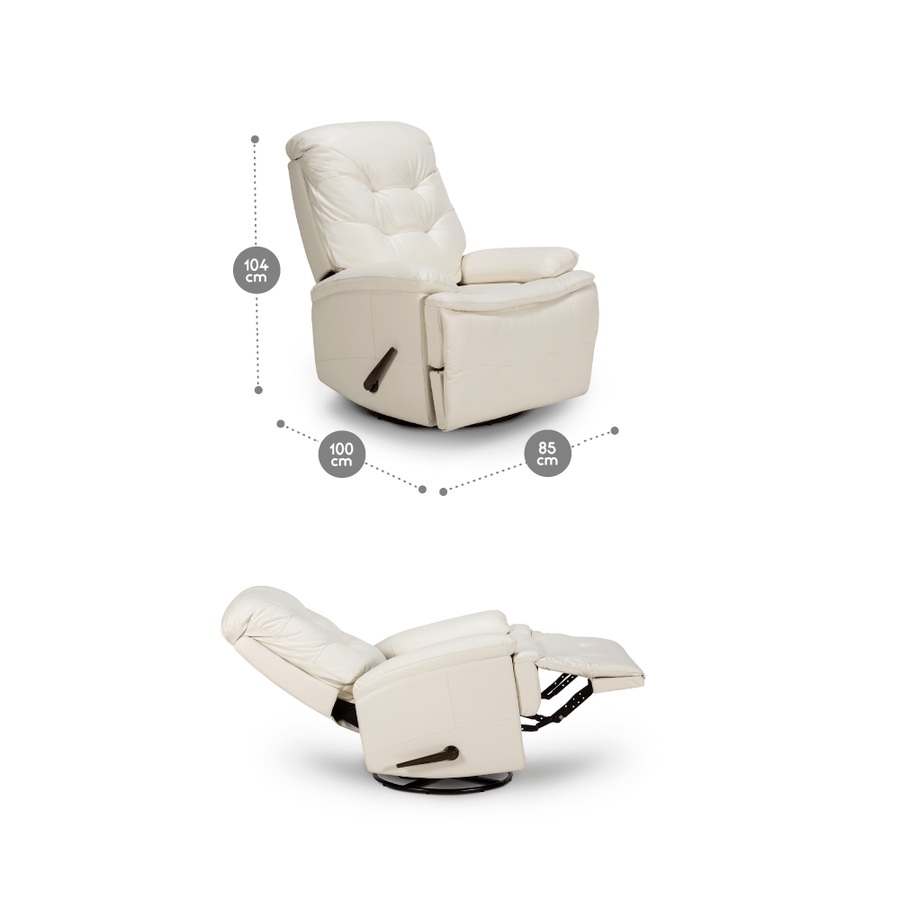 Confortable bergere tapizado en cuero pigmentado y ecocuero. Tiene incorporada la tecnología Sliding, movimiento de corredera que permite deslizar el asiento en recorrido lineal, hacia delante y hacia atrás.