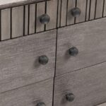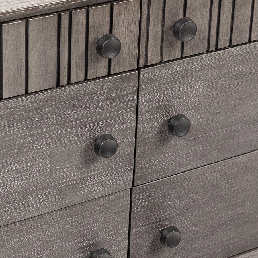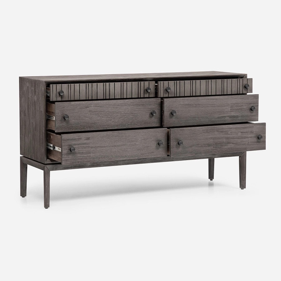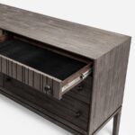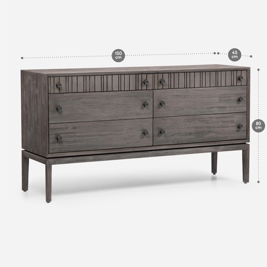 • Cajón: Madera de acacia con correderas extensibles metálicas de cierre suave y tiradores metálicos. Los 2 cajones superiores tienen fondo afelpado.