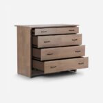 3. Apertura por rieles telescópicos, tiradores metálicos: La cómoda Harland incorpora rieles telescópicos y tiradores metálicos para un cierre y apertura más sencillo.